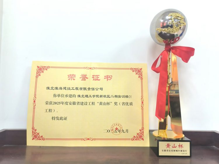 捷報傳來,碩果飄香!近日,安徽省住房和城鄉(xiāng)建設廳、省交通運輸廳、省水利廳聯(lián)合公布2025年度安徽省建設工程“黃山杯”獎獲獎名單,由淮海建工公司承建的淮北理工學院新校區(qū)二期實訓樓01工程榮耀登榜。
